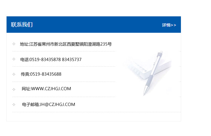 傳真:0519-83435688    郵編:213135    網址:WWW.czjhgj_com.hbhuafengyuan.com    電子郵箱:JH@czjhgj_com.hbhuafengyuan.com